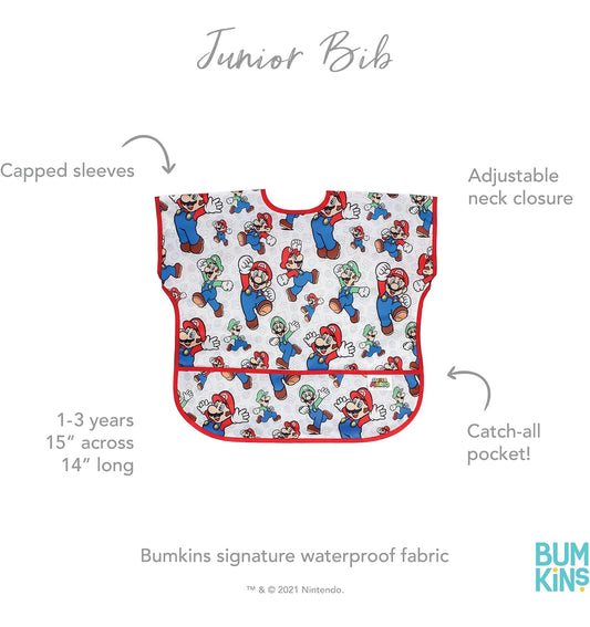 BUMKINS - 任天堂造型超防水飯衣 (Mario 短袖款) Junior Bib
