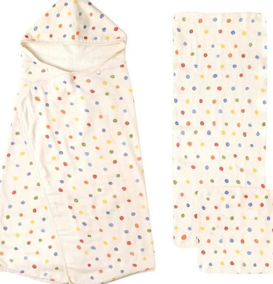 10mois - 日本製二重紗毛巾連帽浴巾套裝(3件套) (粉彩水玉/ My Flower 款)