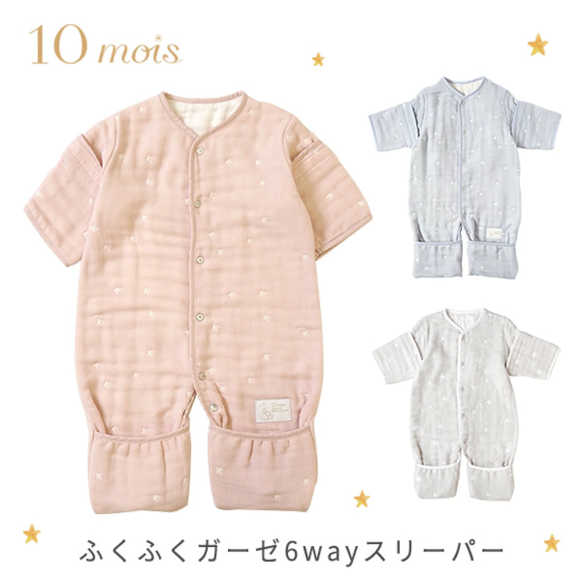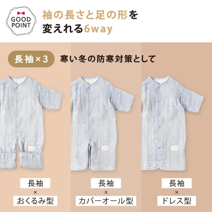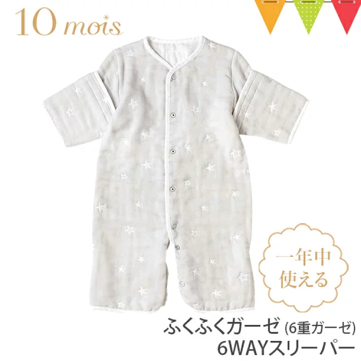 10mois - 超柔軟透氣 銀河星六重紗6-WAY可拆袖成長型睡袍